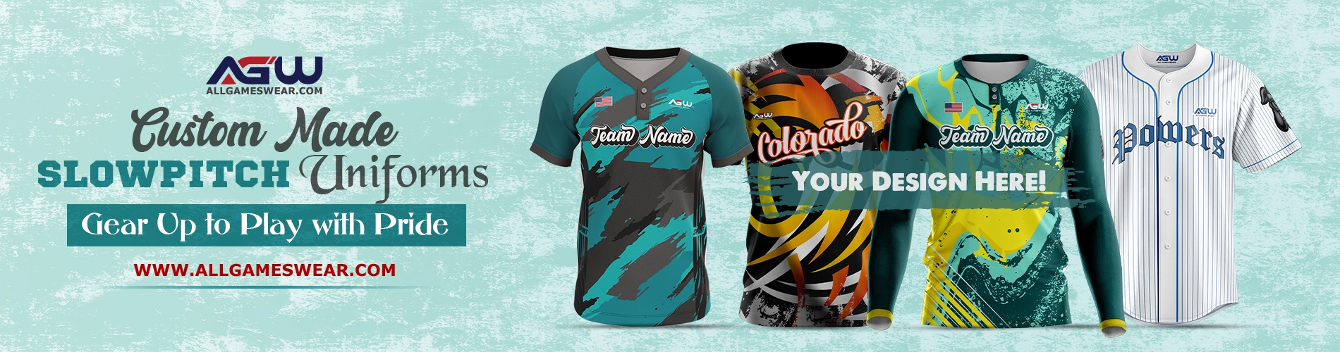 Slow-pitch softball uniforms along with slow-pitch softball shirts and any other accessories that your team may require are available at All Game Wear. Participating in an ordinary league match? Getting ready for a championship match? Our custom slow-pitch softball jerseys ensure you keep your team trendy. If you are interested in something different, then take advantage of our slow-pitch softball jersey maker. You can create every aspect to your liking. It’s simple and fun!